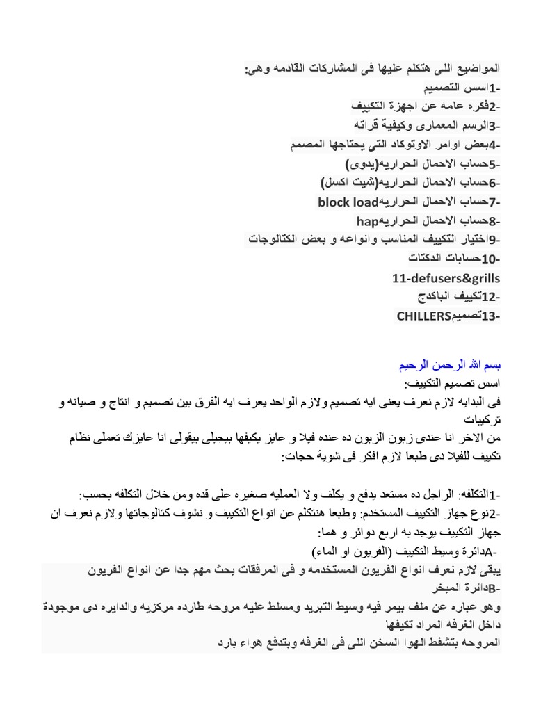 حساب احمال تبريد تكييف المطابخ.