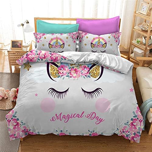 طباعه ثلاثية الابعاد علي اطقم لحف غرف النوم. طقم لحاف برسمة وحيد القرن الوردي ثلاثي الأبعاد من واويلايف يحتوي على سحابة كاملة وتصميم وحيد القرن الملون مع لحاف ملاءة مسطحة ملاءة جاهزة و2 غطاء وسادة للمراهقين أحادي القرن الوردي كامل